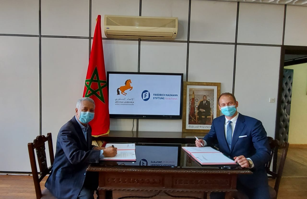 انعقد صباح هذا اليوم بمقر الامانة العامة للحزب حفل التوقيع على اتفاقية شراكة و تعاون بين حزب الاتحاد الدستوري ومنظمة فريدريش نومان الالمانية ، وقع عن جانب الحزب محمد ساجد الامين العام وعن جانب المنظمة السيد سيباستيان فاغ مدير المنظمة .