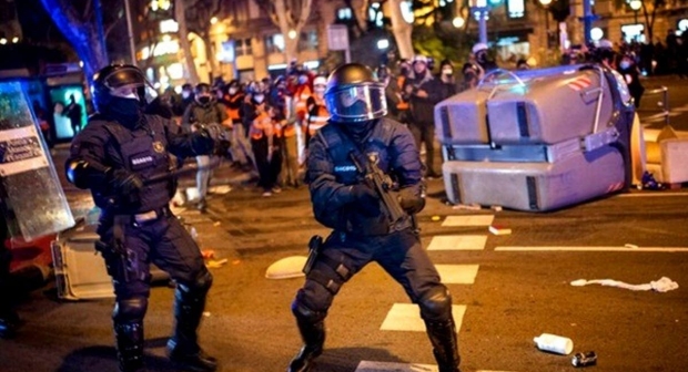 وخرج الناس في عدة مدن إسبانية في مظاهرات تحولت إلى أعمال عنف بعد أن ألقت الشرطة القبض على بابلو هاسل، الناشط السياسي، ومغني الراب الكتالوني المعروف في البلاد، بتهمة “إهانة مؤسسات الدولة والنظام الملكي الإسباني”.