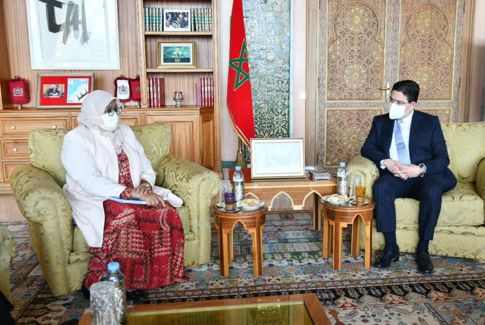 تباحث وزير الشؤون الخارجية والتعاون الإفريقي والمغاربة المقيمين بالخارج، ناصر بوريطة، اليوم الأربعاء بالرباط، مع المديرة التنفيذية لبرنامج الأمم المتحدة للمستوطنات البشرية (موئل الأمم المتحدة)، ميمونة محمد شريف، حول تنزيل الأجندة الحضرية الجديدة وأهداف التنمية المستدامة في المغرب والعالم.