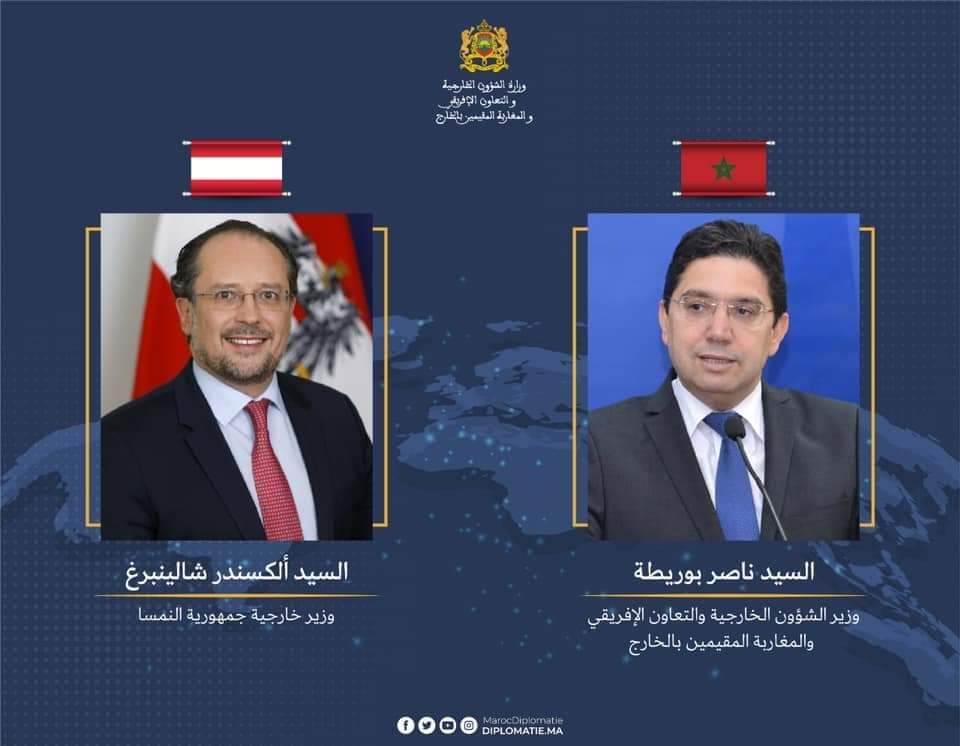 أجرى وزير الشؤون الخارجية والتعاون الإفريقي والمغاربة المقيمين بالخارج ناصر بوريطة، مباحثات هاتفية اليوم الجمعة، مع وزير الشؤون الأوروبية والدولية لجمهورية النمسا، ألكسندر شالينبرغ.