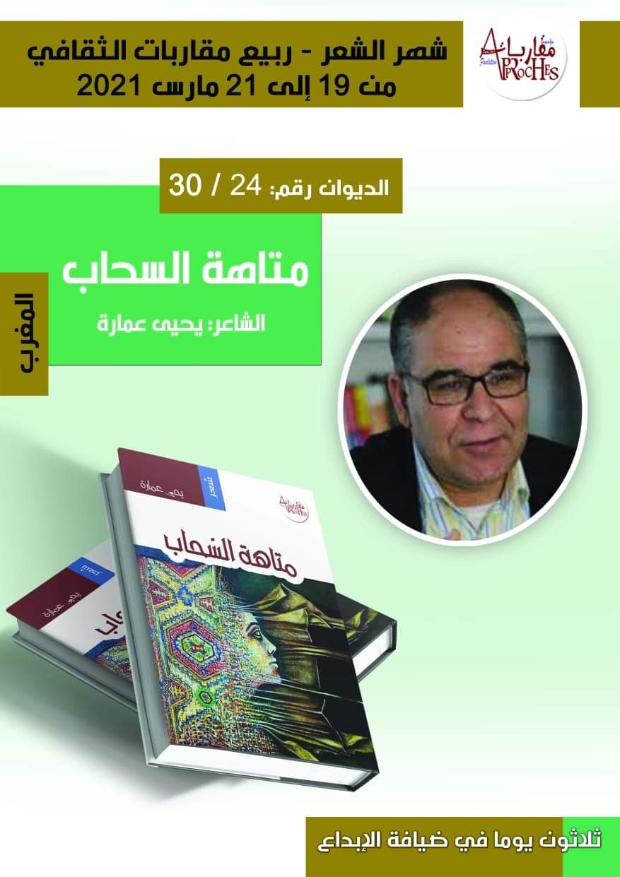 تنفيذا لمقترحها الإبداعي بنشر 30 ديوانا في شهر واحد من 19 فبراير الى 21 مارس 2021 تحت شعار : “لأن الشعر يستحق”، ضمن برنامج ربيع المؤسسة الثقافي 2021، أطلقت مؤسسة مقاربات العنوان الإبداعي الرابع والعشرين للشاعر المغربي يحي عمارة بعنوان:” متاهة السحاب” .