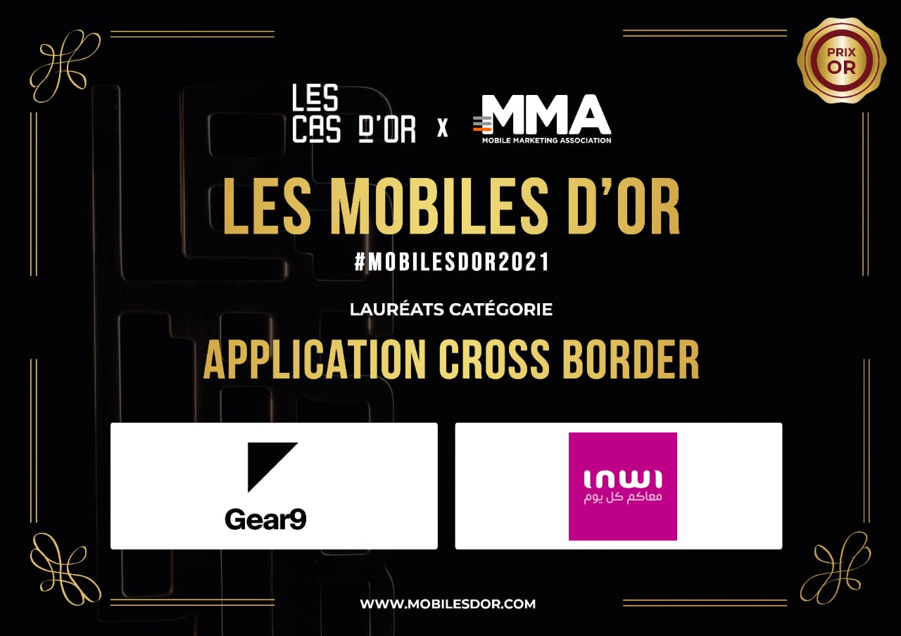 تألق دولي جديد لإنوي الفاعل الرقمي يفوز يوم 23 مارس في باريس بجائزة تطبيق Cross Border « l’Application Cross Border » على إثر مشاركته في المنافسة الدولية “النقال الذهبي” والتي تعترف بالتميز التكنولوجي لتطبيقه”Win by inwi” .