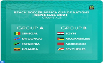 وضعت قرعة كأس الأمم الإفريقية للكرة الشاطئية ، (السنغال 2021)، التي جرت اليوم الخميس بمقر الكونفدرالية الإفريقية لكرة القدم بالقاهرة، المنتخب المغربي في المجموعة الثانية، إلى جانب منتخبات مصر والموزمبيق والسيشل.