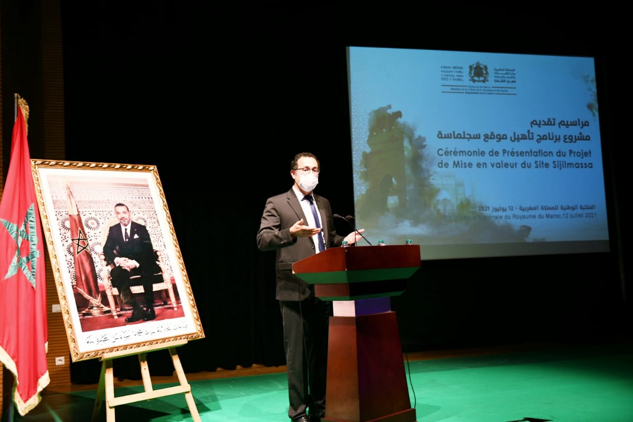 ترأس عثمان الفردوس، وزير الثقافة والشباب والرياضة يوم الاثنين 12يوليوز 2021 بمقر المكتبة الوطنية للمملكة المغربية بالرباط، مراسيم تقديم مشروع ” برنامج تأهيل موقع سجلماسة الأثري”، بحضور عدد هام من ممثلي البعثات الدبلوماسية المعتمدة ببلادنا وبعض سامي الشخصيات الوطنية والدولية.
