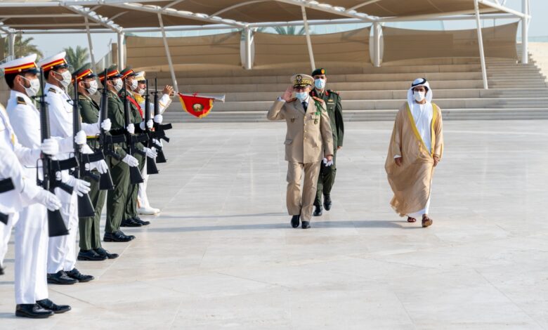 ولي عهد أبوظبي يستقبل الجنرال دوكور دارمي بلخير الفاروق المفتش العام للقوات المسلحة الملكية قائد المنطقة الجنوبية