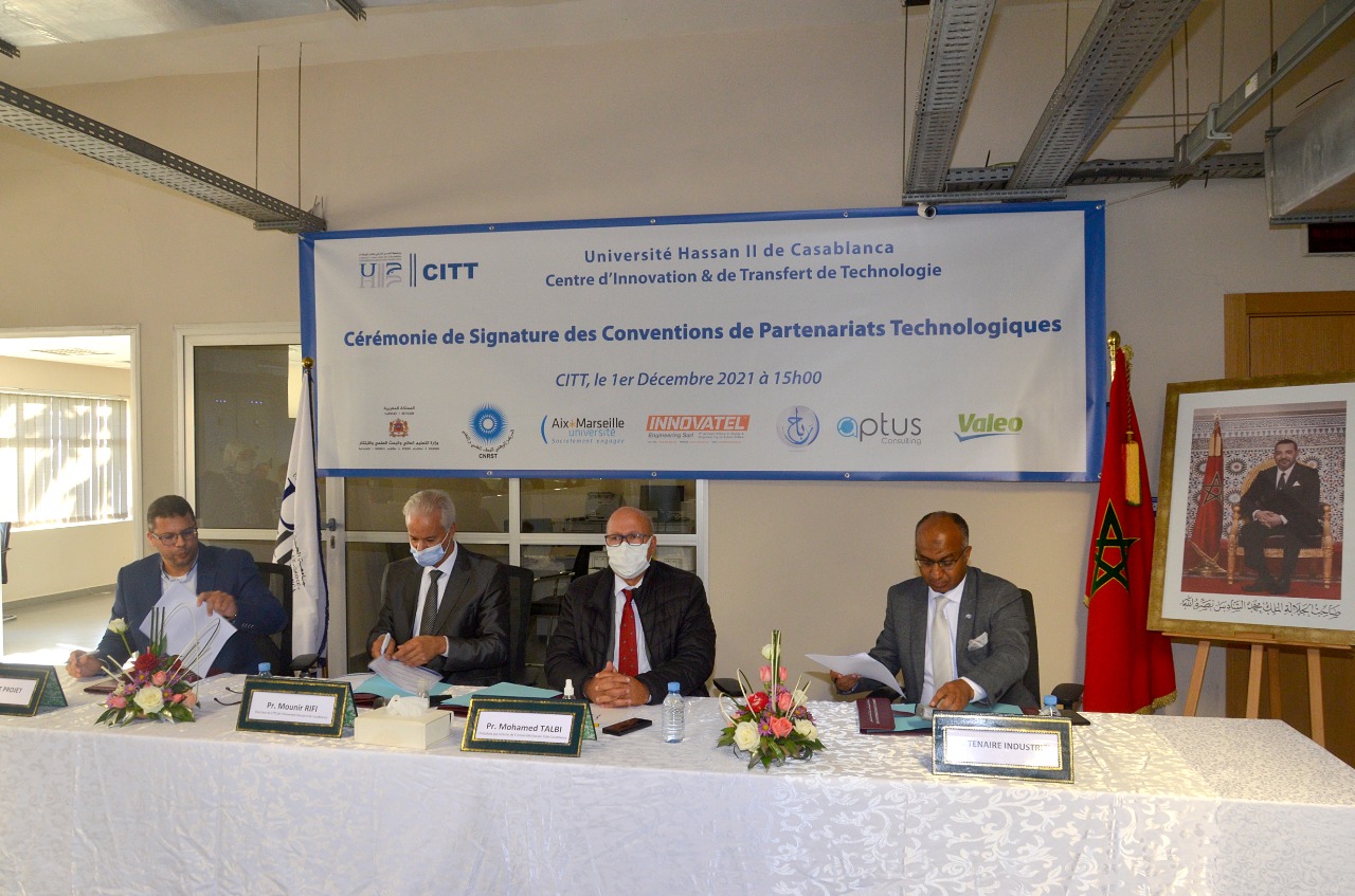 أشرف كل من محمد الطالبي رئيس جامعة الحسن الثاني بالدارالبيضاء، بالنيابة، ومنير الريفي مدير “مركز الابتكار ونقل التكنولوجيا ، الأربعاء فاتح دجنبر الجاري، على حفل توقيع اتفاقيات شراكة، مع عدد من المؤسسات والمقاولات، بهدف نقل التكنولوجيا بين حاملي المشاريع الابتكارية من جهة والفاعلين الاقتصاديين في القطاع الصناعي من جهة ثانية.