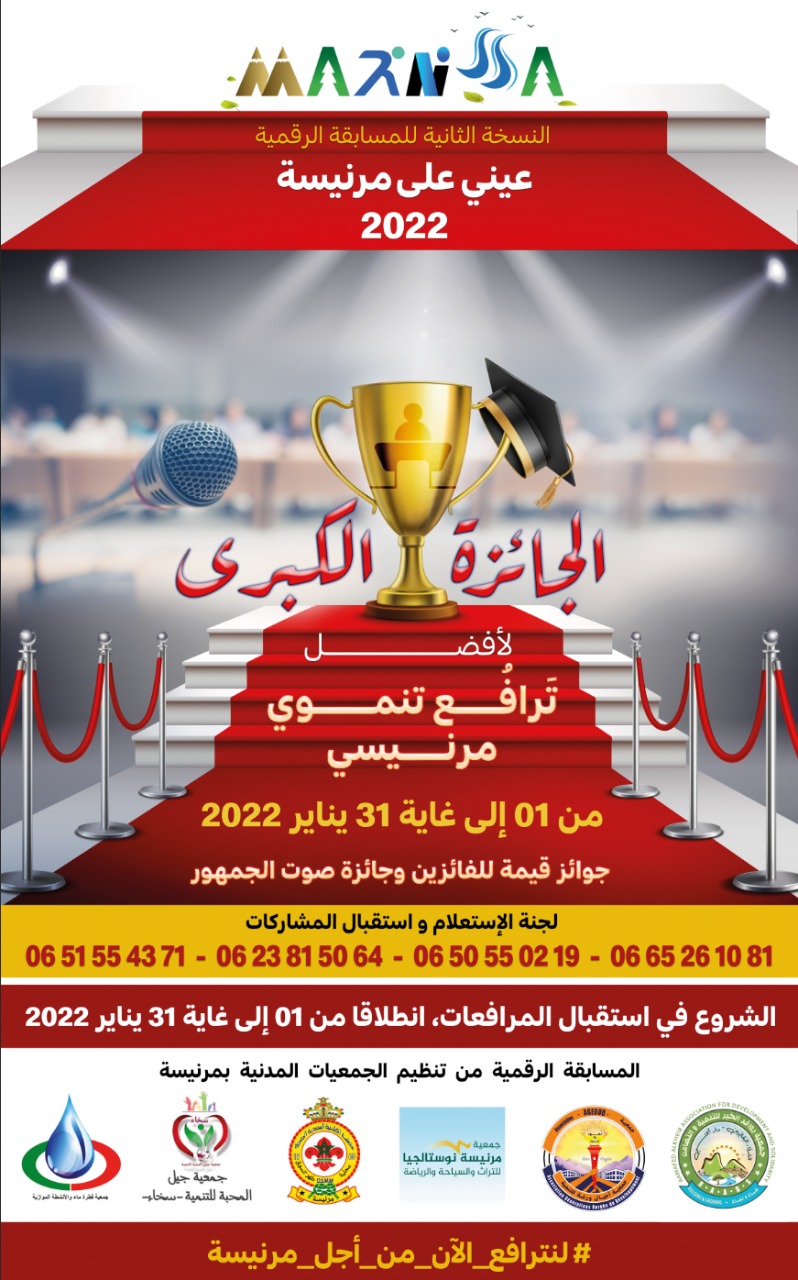 في إطار أنشطته الرقمية التفاعلية التي تعنى بالتنمية المجالية، قرر إئتلاف النسيج الجمعوي المحلي بمرنيسة تنظيم أول مبادرة رقمية من نوعها على مستوى الإقليم، وتشارك تنظيميا في فعاليات هذه المبادرة بالإضافة لثلة من الفاعلين في المجتمع المدني، ست جمعيات تنشط بالمجال الترابي لمنطقة مرنيسة: الكشفية المحمدية المغربية-فرع مرنيسة، جمعية مرنيسة نوستالجيا للتراث والسياحة والرياضة، جمعية روافد الخير للتنمية والتضامن (رعد)، جمعية أجيال ورغة للتنمية (أجود)، جمعية قطرة ماء والأنشطة الموازية، وجمعية جيل المحبة والتنمية (سخاء). وتجدر الإشارة أن هذه المبادرة الرقمية هي النسخة الثانية لمسابقة عيني على مرنيسة 2021 التي نظمتها جمعية روافد الخير للتنمية والتضامن، نسخة لاقت استحسانا وتجاوبا كبيرين من طرف الساكنة والمتتبعين والنشطاء في المجال الرقمي، وكانت تهدف لإبراز المؤهلات الطبيعية العذراء لمنطقة مرنيسة، أما النسخة الثانية لمسابقة عيني على مرنيسة لهذه السنة فأخذت بعدا آخر من حيث الشكل والمضمون وتحمل كشعار لسنة 2022 لنترافع الآن من أجل مرنيسة، إذ تتميز هذه النسخة عن سابقتها بكونها تتناول لأول مرة موضوع الترافع التنموي وتعتبر سابقة في المنطقة والاقليم.