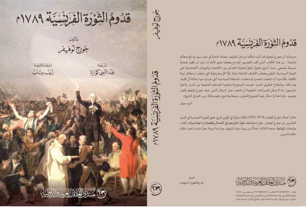 صدر للروائي والمترجم المغربي عبد النبي كوارة عن منتدى العلاقات العربية والدولية كتاب” قدوم الثورة الفرنسية 1789″ للمؤرخ جورج لوفيفر، وهو «عمل كلاسيكي» بما في الكلمة من معنى. كتاب مشهور في جميع أنحاء العالم، وقد ترجم إلى لغات متعددة في العديد من البلدان. ويمكن للمرء أن يتساءل عن أسباب النجاح الذي لم ينكر أبدا، منذ الاستعراض النقدي الأول الرائع الذي نشر بقلم لوسيان لوفيفر(Lucien Febvre)، مؤسس «الحوليات» (Les Annales) في تسليم ربيع 1940 لهذه المجلة، بضعة أشهر قبل أن يقضي المحتل بالقصف على النسخ المتبقية من السحب الأول