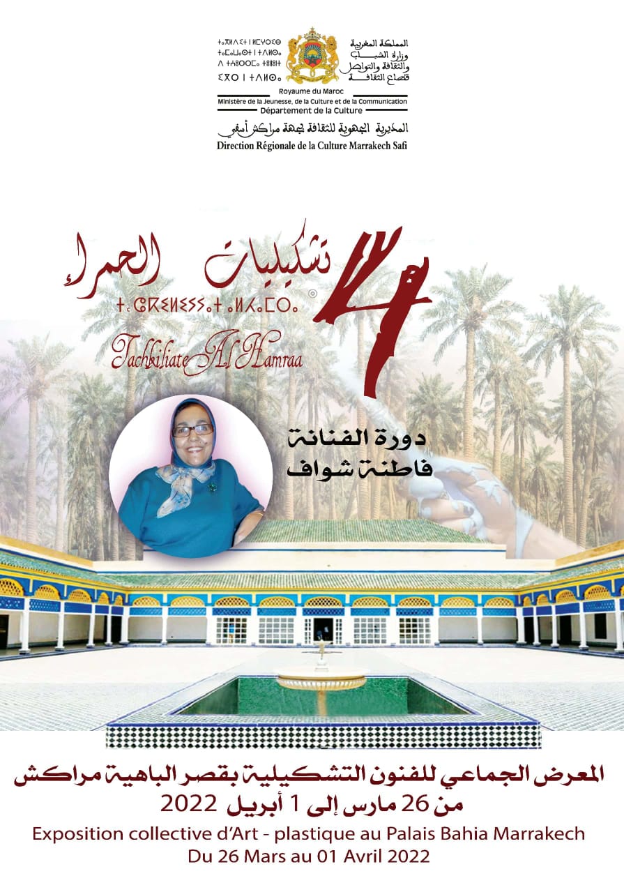 تنظم المديرية الجهوية للثقافة مراكش- أسفي بتنسيق مع محافظة قصر الباهية الدورة الرابعة ل”تشكيليات الحمراء” في الفترة الممتدة ما بين 26 مارس وفاتح أبريل 2022 بالمعلمة التاريخية قصر الباهية بمراكش.