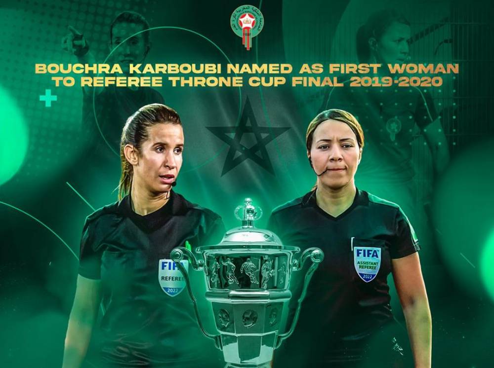 عينت لجنة التحكيم التابعة للجامعة الملكية المغربية لكرة القدم، بشرى كربوبي، لقيادة المباراة النهائية لمسابقة كأس العرش (موسم 2019- 2020 ) ،والتي ستجرى بعد غد السبت على أرضية الملعب الكبير بمدينة أكادير، بين فريقي الجيش الملكي والمغرب التطواني ،في حدود الساعة الرابعة بعد الزوال.