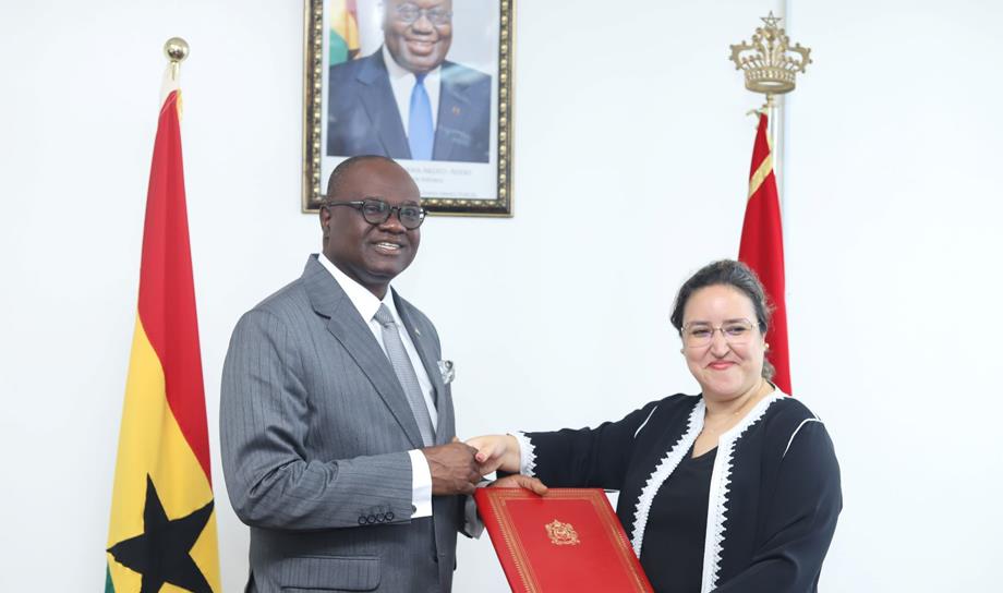 وأضافت الوكالة أن نائب وزير الشؤون الخارجية والاندماج الإقليمي المكلف بالشؤون السياسية والاقتصادية كواكو أمبراتوم ساربونغ، وسفيرة المملكة المغربية لدى غانا، إيمان واعديل أشرفا خلال هذا الأسبوع بأكرا على تبادل الوثائق باسم بلديهما مذكرة بأن الاتفاقية تم التوقيع عليها خلال الزيارة التي قام بها صاحب الجلالة الملك محمد السادس إلى غانا في سنة 2017.
