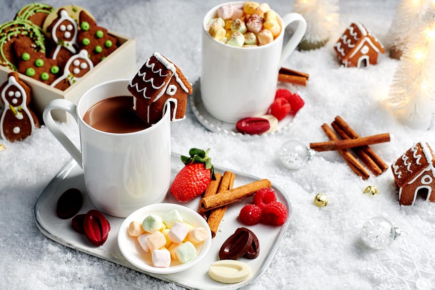 وتكتمل المتعة والأجواء الاحتفالية على رحلات طيران الإمارات طوال شهر ديسمبر، مع وجبات خاصة ووجبات خفيفة، وأنوار عيد الميلاد باللونين الأخضر والأحمر. أما الطبق الرئيسي في جميع الدرجات، فهو الديك الرومي المشوي مع مستلزماته، بالإضافة إلى الحلويات الخاصة بالمناسبة، مثل كعكة الزنجبيل الفاخرة المحشوة بالكريمة وصلصة القرفة. ويقدم في الصالون الجوي على طائرات A380 فطائر ومعجنات ومشروبات خاصة. كما تقدم مضيفات طيران الإمارات، في المدة من 24 إلى 26 ديسمبر، هدايا صغيرة من الحلويات والشوكولاتة لجميع الركاب.