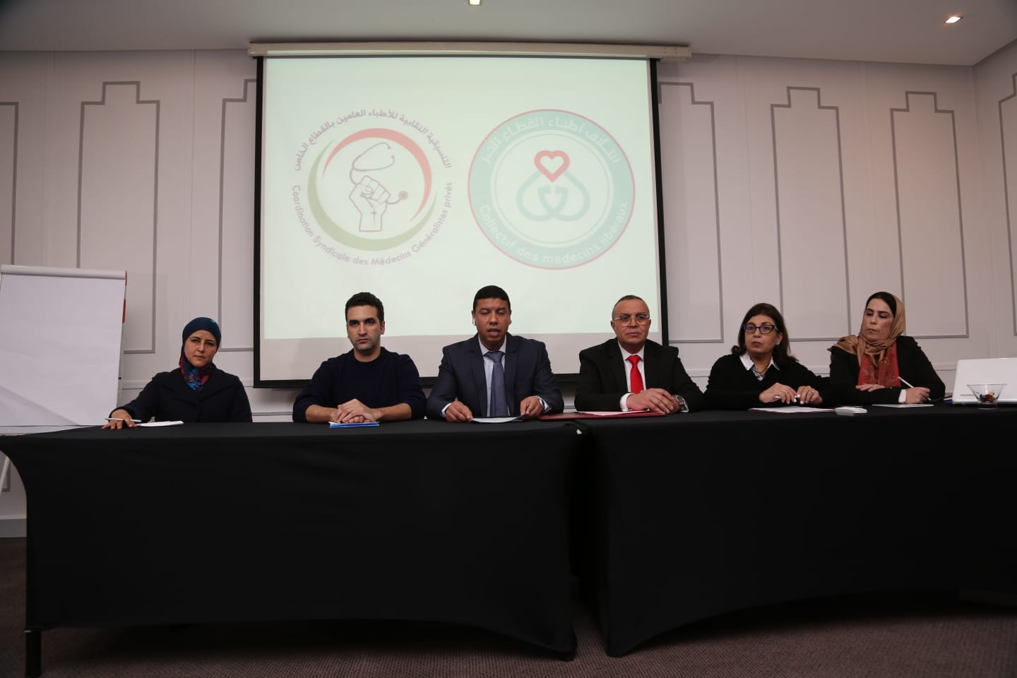 وأضاف قائلا: “تعتبر هاته الندوة الصحفية فرصة للتأكيد من جديد على مختلف نقط الملف المطلبي لطبيب القطاع الحر والتي تراوح مكانها منذ مدة طويلة في تكريس لسياسة الآذان الصماء وغياب إرادة حقيقية للنهوض بالقطاع عشية تعميم التغطية الصحية التي أطلق لبنتها صاحب الجلالة نصره الله؛ ووجب التأكيد في هذا الإطار على تجندنا وراء جلالته للتسريع بنجاح الإرادة الملكية السامية”.