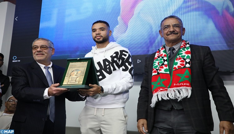 وتم بالمناسبة الإحتفاء باللاعب النصيري الذي حضر مصحوبا بأفراد من عائلته، تنويها وإشادة بالمستوى الكروي العالي الذي أبان عنه المهاجم المغربي خلال المحفل الكروي العالمي بقطر.
