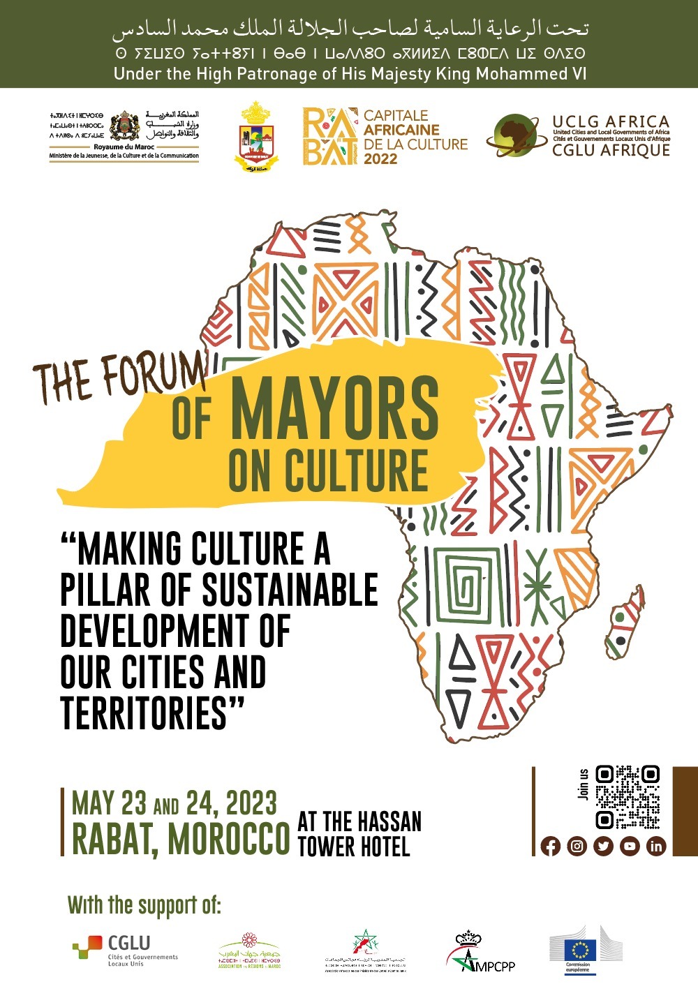 تستعد مدينة الرباط لاحتضان فعاليات منتدى العمد وقادة الجماعات الترابية الإفريقية حول الثقافة، في الفترة ما بين بين 23 و24 ماي 2023، التي تنظم تحت الرعاية السامية لصاحب الجلالة الملك محمد السادس، وذلك في إطار احتفالات الرباط، عاصمة الثقافة الإفريقية.