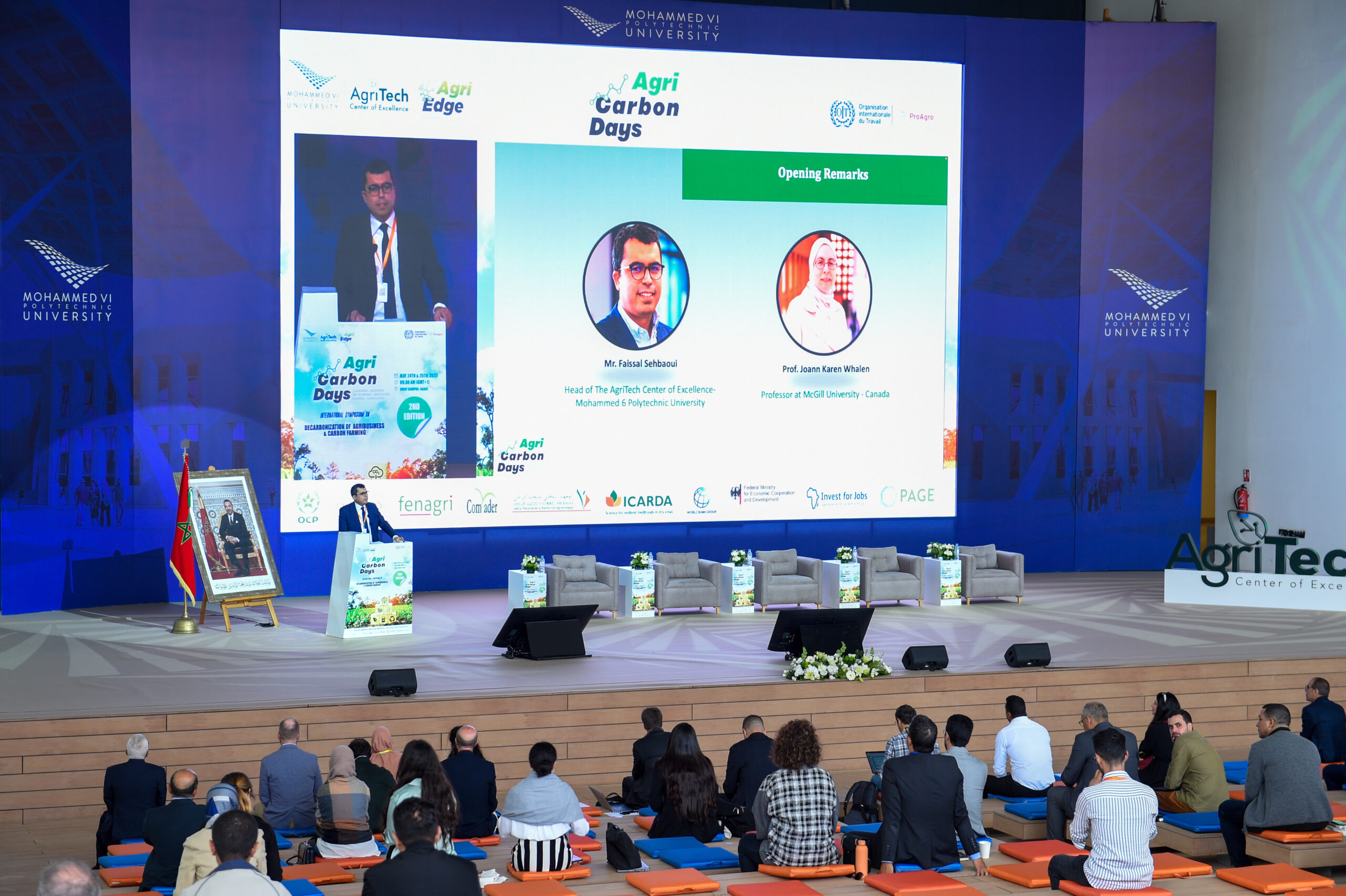 وقد شكلت الندوة الدولية حول إزالة الكربون من الصناعة الغذائية واحتجاز الكربون من خلال الزراعة، فرصة للمشاركين للنقاش حول التحديات والفرص المرتبطة بالتقليل من انبعاثات غازات الدفيئة في الصناعة الغذائية. كما قام باحثون بارزون بعرض آخر ما توصلوا له في مجال التكنولوجيات الناشئة والهادفة إلى الرفع من الإنتاج الغذائي ذي البصمة الكربونية المنخفضة وتشجيع احتجاز الكربون على مستوى الأراضي الزراعية. من جهة أخرى، قام محاضرون مرموقون بمناقشة السياسات والاستراتيجيات الأساسية من أجل دعم تبني ممارسات فلاحية مستدامة، ما يسهم بالتالي في الوصول للهدف المنشود وهو تحقيق الحياد الكربوني.