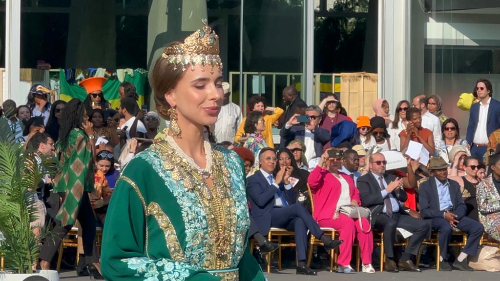وقد سجلت هذه الأمسية، مشاركة متعهدة علامة “Fatim Haute couture made In Morroco” المصممة المغربية فاطمة الزهراء الفيلالي الإدريسي، سفيرة القفطان المغربي بالنظر لعديد مشاركاتها المتميزة بأبرز منصات المودة العالمية، التي حلت بباريس بدعوة خاصة لتمثيل المغرب بصفة حصرية، حيث قامت على ترانيم وإيقاعات موسيقية مستوحاة من التراث الطربي والأندلسي، باستعراض تشكيلة من القفاطين المغربية الأصيلة كانت عبارة عن لوحات فرجوية، حية وممتعة، تجسد فخامة وشرف الزي الوطني التقليدي المتمثل في القفطان المغربي باعتباره موروثا راقيا أصيلا ظل على مر مختلف الفترات والأجيال، يعكس بأشكاله ومكوناته ومضامينه الرمزية حجم العراقة الثقافية والتاريخية والحضارية للمغرب.