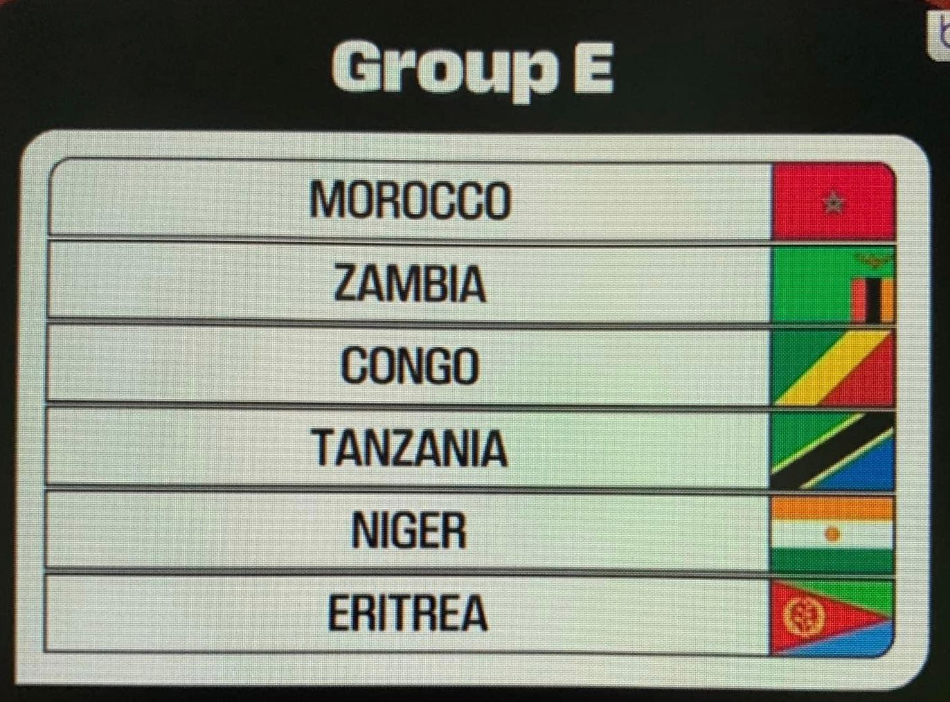 وضعت قرعة مجموعات التصفيات المؤهلة لكأس العالم 2026 عن منطقة إفريقيا، المغرب ضمن المجموعة (E) الى جانب كل من زامبيا والكونغو وطنزانيا، والنيجر وإيريتيريا. وجرت عملية قرعة التصفيات المؤهلة لمونديال 2026 المقرر تنظيمه بكل من الولايات المتحدة وكندا والمكسيك، اليوم الخميس بالعاصمة الايفوارية ابيدجان على هامش الجمعية العمومية العادية ال45 للكنفدرالية الافريقية لكرة القدم (كاف).