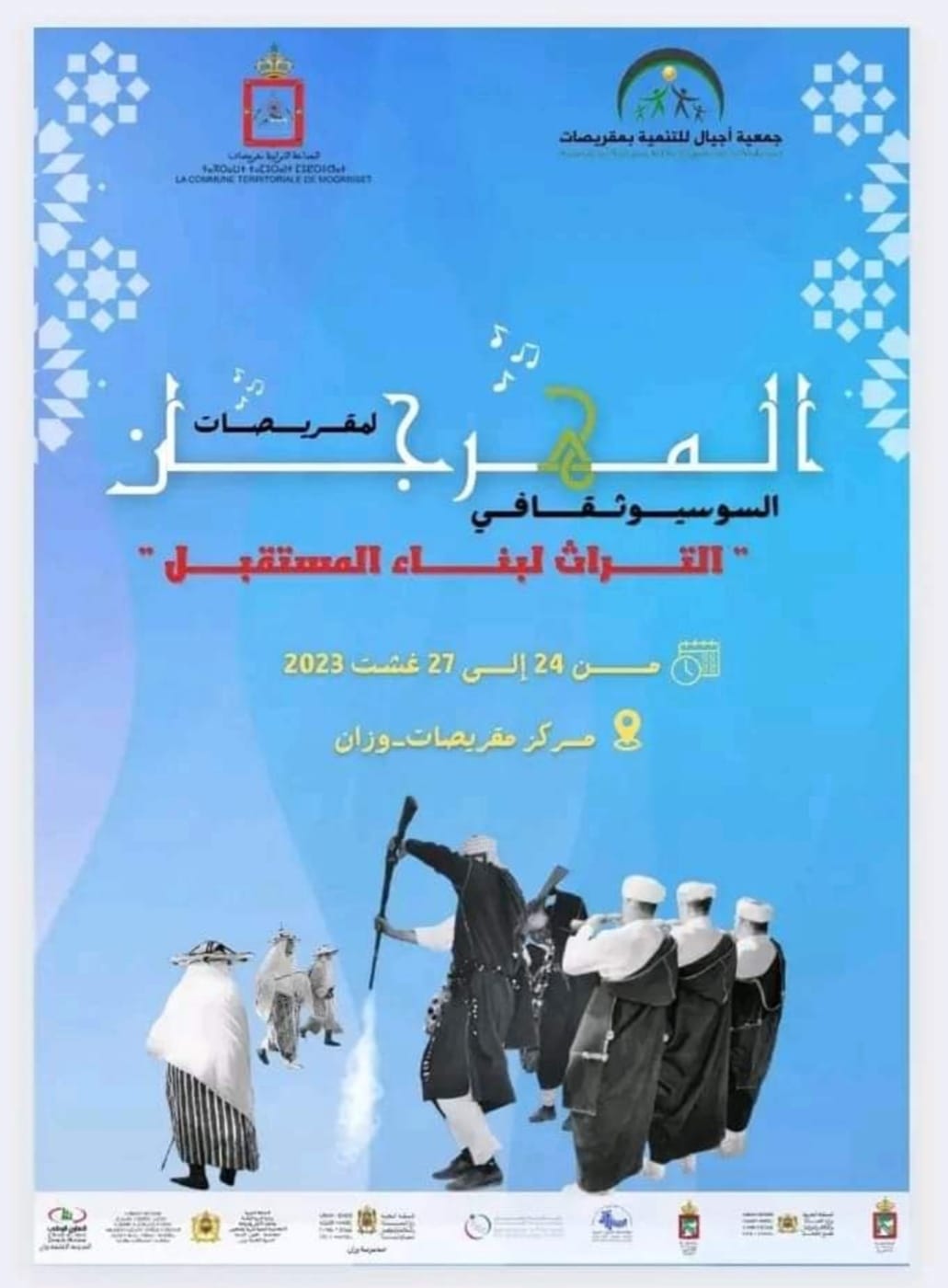 أعلنت جماعة مقريصات، إقليم وزان، عن احتضان فعاليات النسخة الثامنة للمهرجان السوسيوثقافي لمقريصات، الذي تنظمه جمعية أجيال للتنمية بمقريصات، بشراكة مع المجلس الجماعي لجماعة مقريصات، وبمشاركة مجموعة من الجمعيات المحلية، وبدعم من عمالة إقليم وزان، وزارة الثقافة والشباب والتواصل – قطاع الثقافة، مجلس إقليم وزان، مجلس جهة طنجة تطوان الحسيمة ووكالة إنعاش وتنمية الشمال، وذلك في الفترة من 24 إلى 27 غشت 2023.