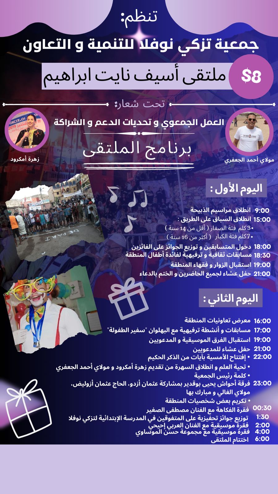 وفي بلاغ لها توصل موقع “المستقبل24” بنسخة منه، كشفت جمعية تزكي نوفلا للتنمية والتعاون أن فعاليات الملتقى الثامن لأسيف نايت ابراهيم، المنظم تحت شعار “العمل الجمعوي وتحديات الدعم والشراكة”، تضم حسب جدول البرنامج مجموعة من الأنشطة الثقافية والرياضية لفائدة الأطفال الأقل من 18 سنة، فضلا عن تنظيم معرض خاص بالتعاونيات لعرض منتجاتهم المحلية.