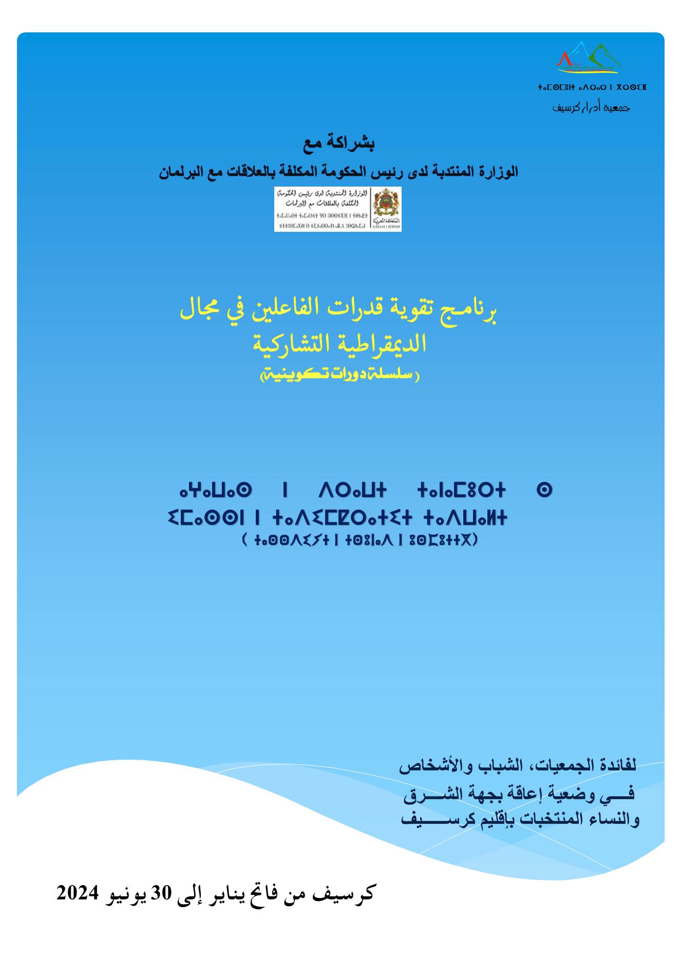 وفي بلاغ لها توصل موقع “المستقبل24” بنسخة منه، ذكرت جمعية أدرار كرسيف أن برنامج تقوية قدرات الفاعلين في مجال الديمقراطية التشاركية يتكون من سلسلة دورات تكوينية حول المواضيع التالية: