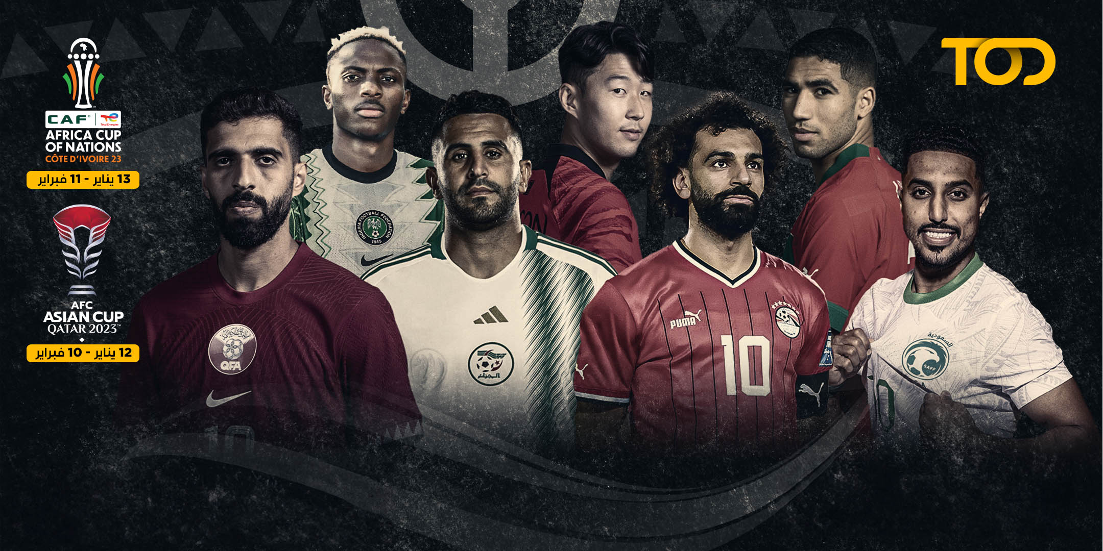 أطلقت منصة TOD، المنصة الرائدة في بث المحتوى الرقمي الرياضي والترفيهي في منطقة الشرق الأوسط وشمال إفريقيا، باقاتها لمتابعة بطولتي كأس آسيا قطر2023 ™ وكأس أمم إفريقيا كوت ديفوار 2023 توتال إنيرجيز، حيث انطلقت البطولة الأولى يوم 12 يناير إلى 10 فبراير، والثانية يوم 13 يناير إلى11 فبراير.