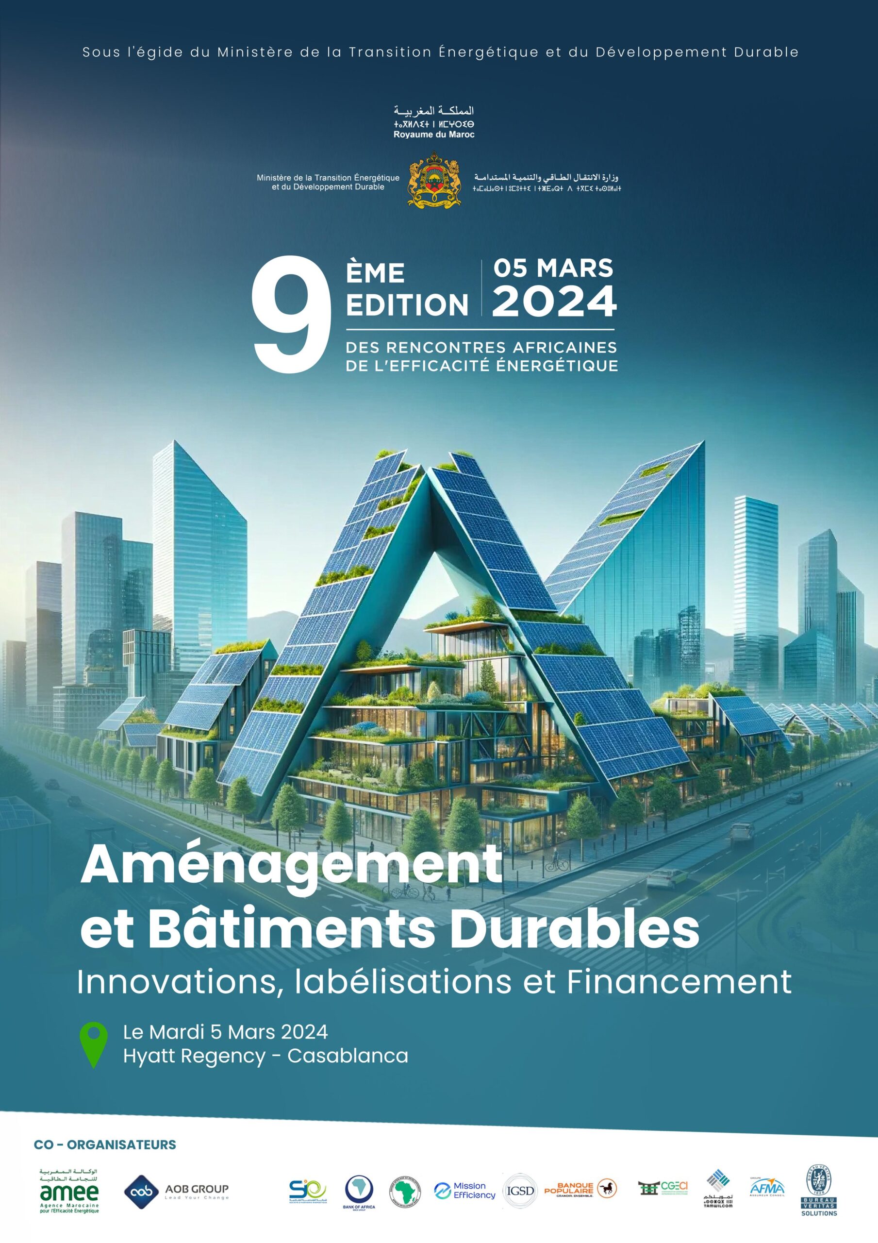 تستعد مدينة الدار البيضاء، يوم الثلاثاء 5 مارس 2024، لاحتضان فعاليات الدورة التاسعة للقاءات الإفريقية للنجاعة الطاقية، التي تنظمها الوكالة المغربية للنجاعة الطاقية (AMEE) ومجموعة AOB، تحت رعاية وزارة الانتقال الطاقي والتنمية المستدامة، وبشراكة مع شركة الهندسة الطاقية (SIE)، والبنك الإفريقي للتنمية، وكونفدرالية أرباب العمل الإيفواريين CGECI والمنظمة الدولية Mission Efficiency.