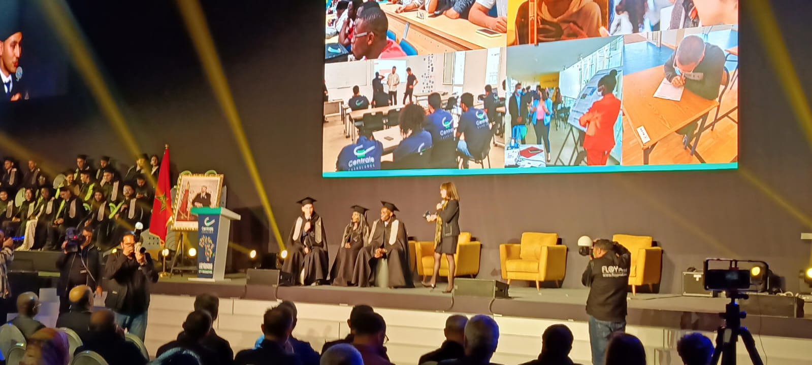 وفي ختام تصريحها، قالت المديرة العامة لمدرسة École Centrale Casablanca: “الموضوع الثاني لحفلنا حقًا هو الالتزام، ويجب السعي لالتزام هؤلاء الطلاب من خلال مجموعة من الأساليب التعليمية المبتكرة. بنينا الحفل حول هذه المواضيع تمامًا. نحن هذا العام الآن على مستوى كامل من القدرة في المدرسة، لأننا قمنا بتوظيف دفعتنا الأخيرة التي تضم حوالي 200 طالب. نحن بذلك في أقصى قوتنا للحصول كل عام، في السنوات القادمة، على 200 طالب هندسة يتخرجون من ECC”.
