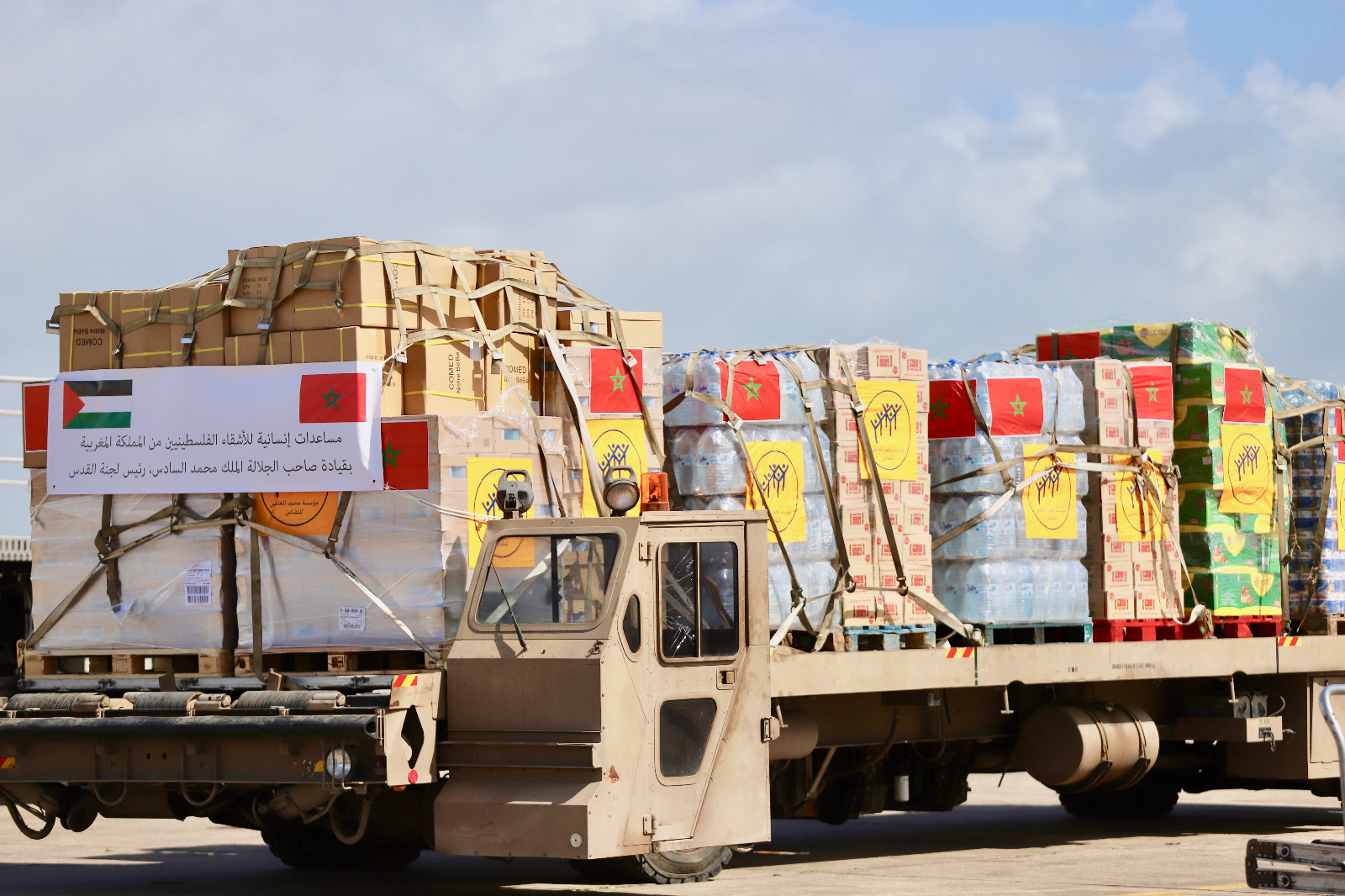 أعطى الملك محمد السادس، رئيس لجنة القدس، تعليماته السامية لإطلاق عملية إنسانية تهم توجيه مساعدة غذائية، عن طريق البر، لفائدة السكان الفلسطينيين في غزة ومدينة القدس الشريف.