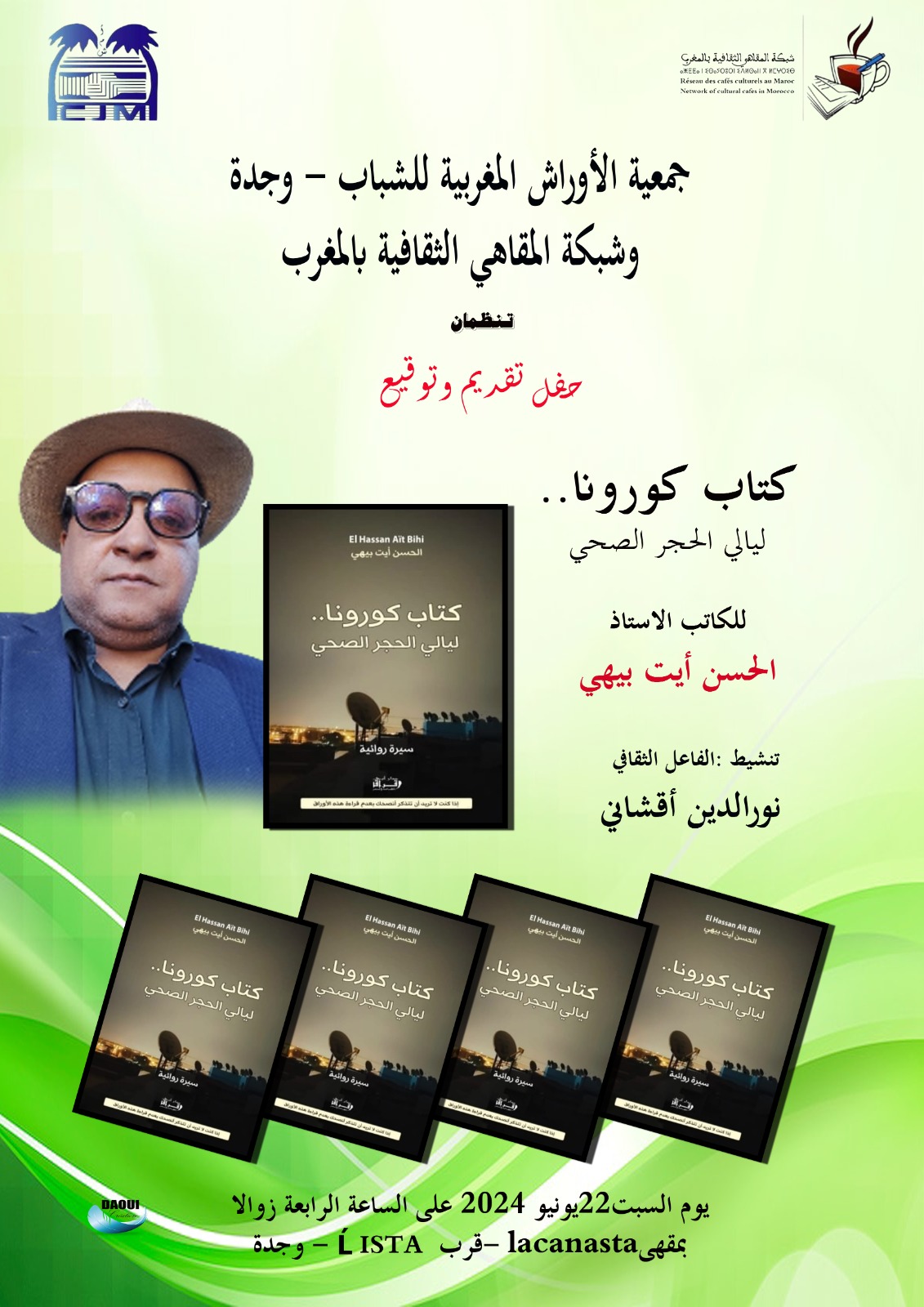 إستمرارا لأنشطتهما الثقافية لهذه السنة، تنظم شبكة المقاهي الثقافية بالمغرب وجمعية الأوراش المغربية للشباب بوجدة، حفل تقديم وتوقيع كتاب “كورونا ليالي الحجر الصحي” للكاتب والإعلامي الحسن أيت بيهي.