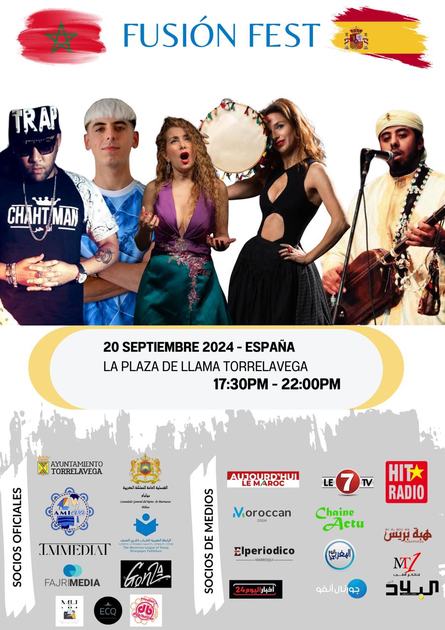 تنظم الرابطة المغربية للشباب ناشري الصحف، بشراكة مع الجمعية الموسيقية الثقافية Amieva، مهرجانين فنيين بطعم مغربي / إسباني “Fusión Fest” “مهرجان المزج”، في نسختيهما الأولى فوق الأراضي الإسبانية تحت شعار: “من أجل مواصلة بناء الجسور الفنية والثقافية والإنسانية بين المغرب وإسبانيا”، ويعقد الأول يوم الخميس 19 شتنبر 2024، بفضاء “la plaza mayor de santillana del mar”، بمدينة سانتيانا ديل مار، ابتداء من الساعة الخامسة مساء، والثاني بـ “la plaza de la llama torrelavega”، بمدينة توريلافيغا يوم الجمعة 20 شتنبر 2024، في التوقيت نفسه.