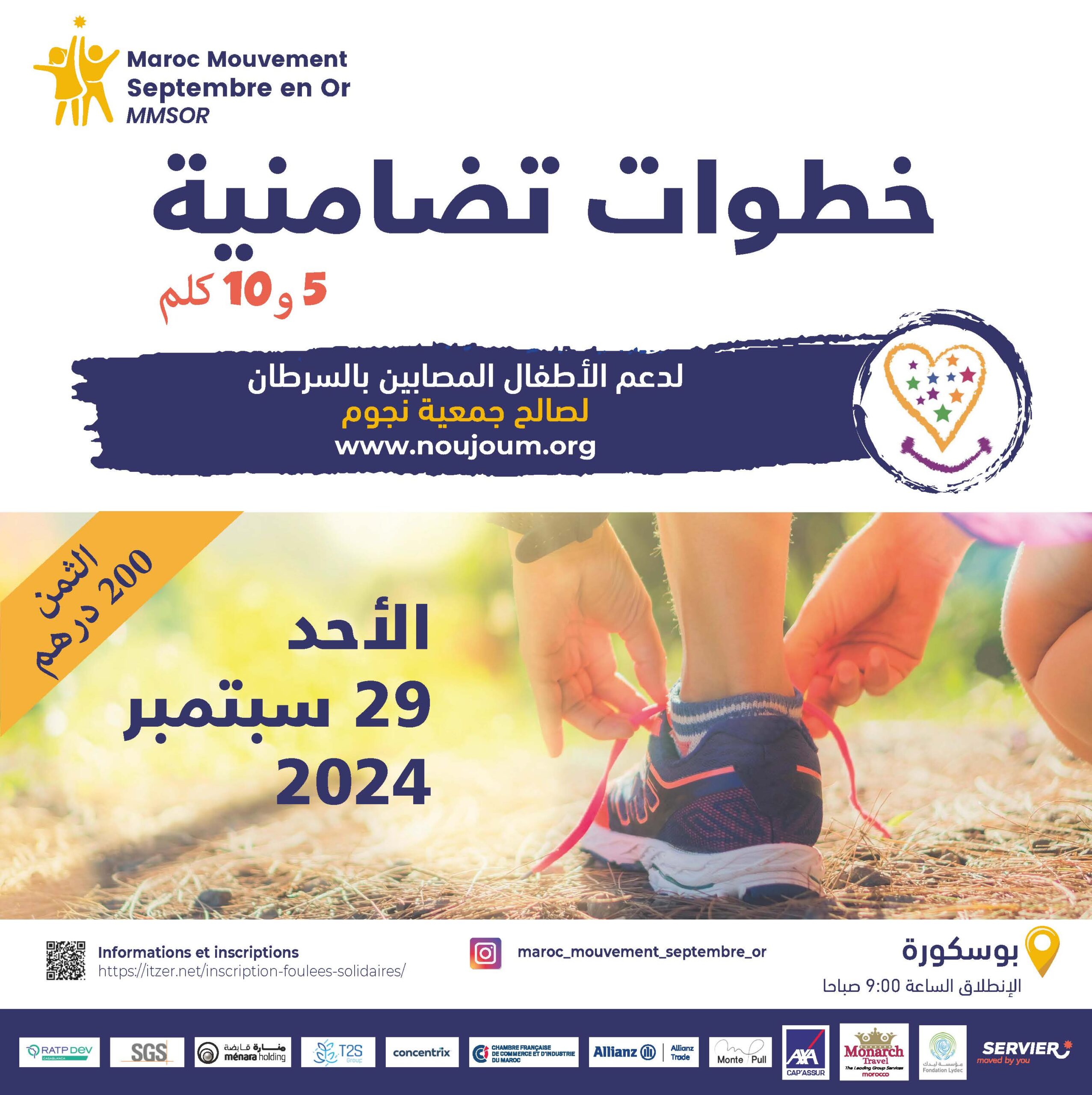 هذا الحدث الرئيسي لشهر شتنبر، والذي يحمل الشريط الذهبي كشعار للتوعية ضد أمراض سرطان الأطفال، هو سباق/تظاههرة تضامنية توحد كل الإرادات لدعم الأطفال المرضى وأسرهم.