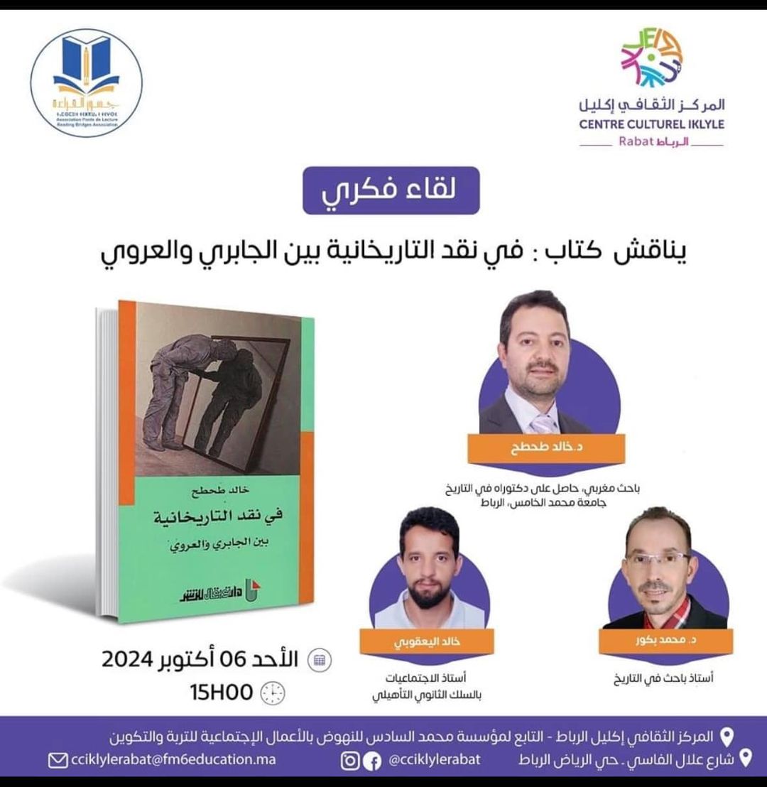 وقد نظم هذا اللقاء الفكري يوم الأحد 06 أكتوبر 2024، بمركز إكليل الثقافي بالرباط ابتداء من الساعة الثالثة والنصف مساء.