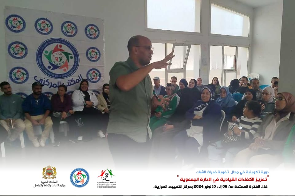 في خطوة هامة نحو تعزيز قدرات القيادات الجمعوية في المغرب، نظمت “جمعية شباب المواطنة المغربية” دورة تكوينية موسعة تحت شعار “تمكين القيادات الجمعوية من مهارات الإدارة والتوثيق الفعّال”، وذلك خلال الفترة الممتدة من 7 إلى 9 نونبر 2024 بمركز التخييم الحوزية.