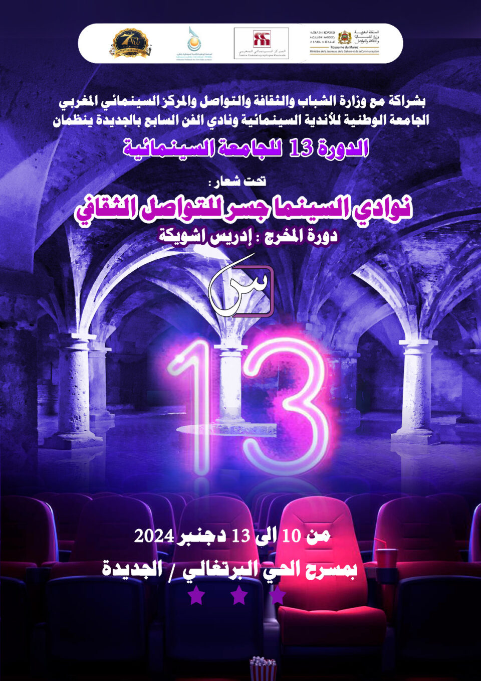من 10 إلى 13 دجنبر 2024، تحتضن مدينة الجديدة الدورة الـ13 من “الجامعة السينمائية”، التي ستتميز بتنظيم ندوة علمية بعنوان: “الأبعاد السيكولوجية في السينما المغربية”. يُشارك في هذه الندوة المخرج سعد الشرايبي والناقدان نور الدين بوخصيبي ومبارك حسني، بينما يتولى الإعلامي شفيق الزكاري إدارتها.
