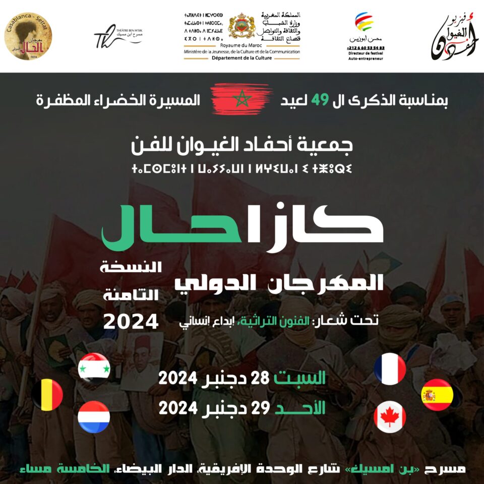 تستعد جمعية أحفاد الغيوان للفن، بقيادة الفنان الشاب محسن أبوزين، لتنظيم الدورة الثامنة من مهرجان الحال الدولي، الذي سيقام في المسرح الكبير بمنطقة بن امسيك بالدار البيضاء، أيام 28 و29 ديسمبر 2024.