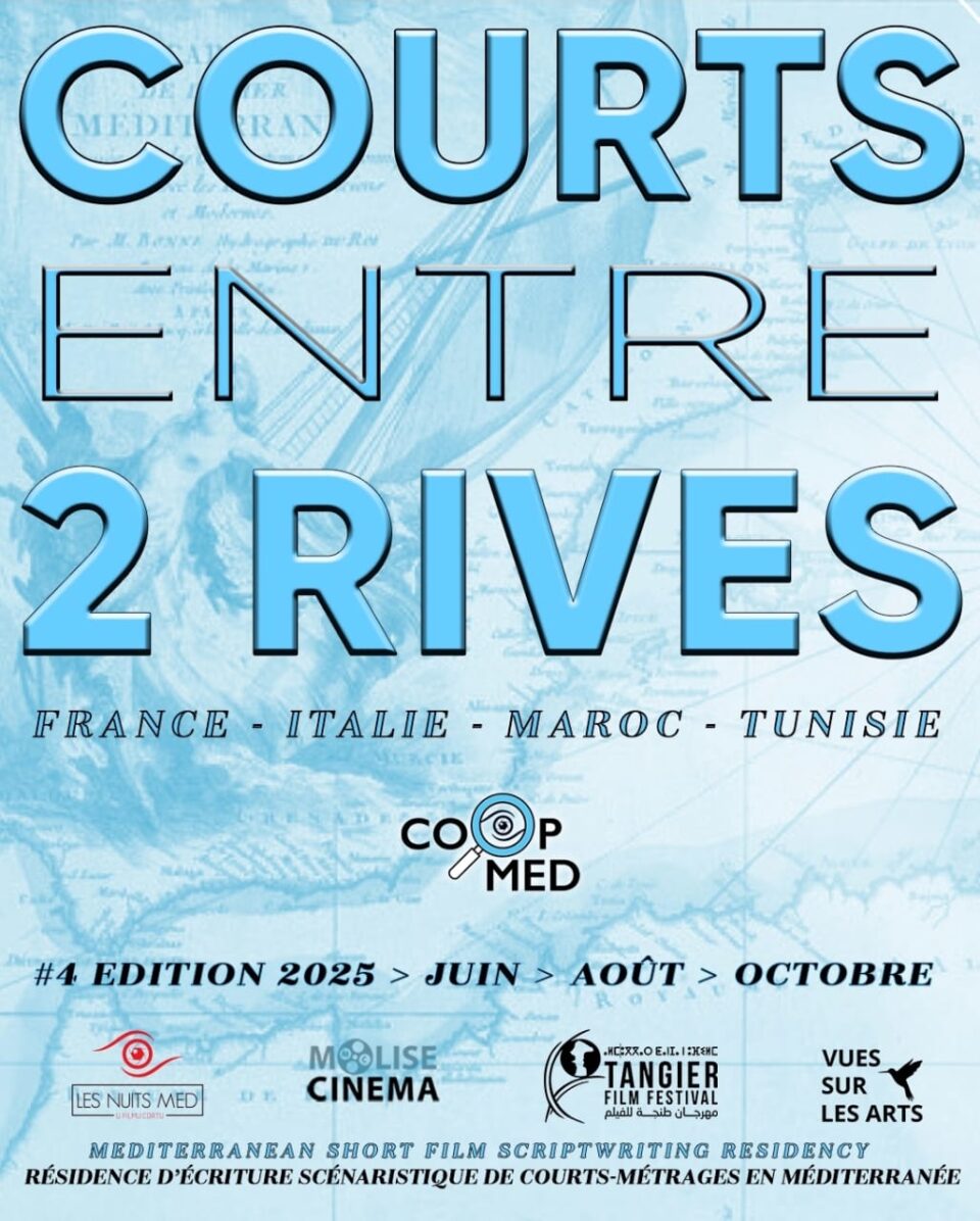 في إطار تعزيز التبادل الثقافي والإبداعي بين ضفتي البحر الأبيض المتوسط، تُنظم النسخة الرابعة من الإقامة السينمائية المتنقلة COURTS ENTRE 2 RIVES خلال عام 2025، وذلك بمبادرة من أعضاء COOPMED (التعاون المتوسطي).