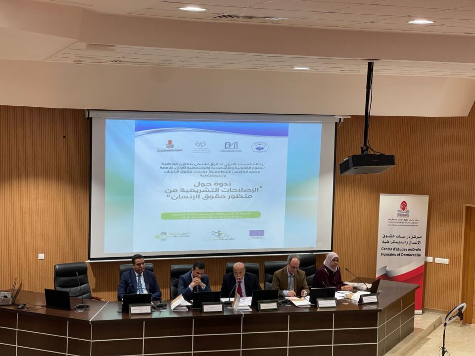 نظمت كلية العلوم القانونية والاقتصادية والاجتماعية – أكدال بجامعة محمد الخامس بالرباط، يوم الأربعاء 19 مارس 2025، ندوة علمية حول موضوع “الإصلاحات التشريعية من منظور حقوق الإنسان”، وذلك بشراكة بين المعهد العربي لحقوق الإنسان ومركز دراسات حقوق الإنسان والديمقراطية.