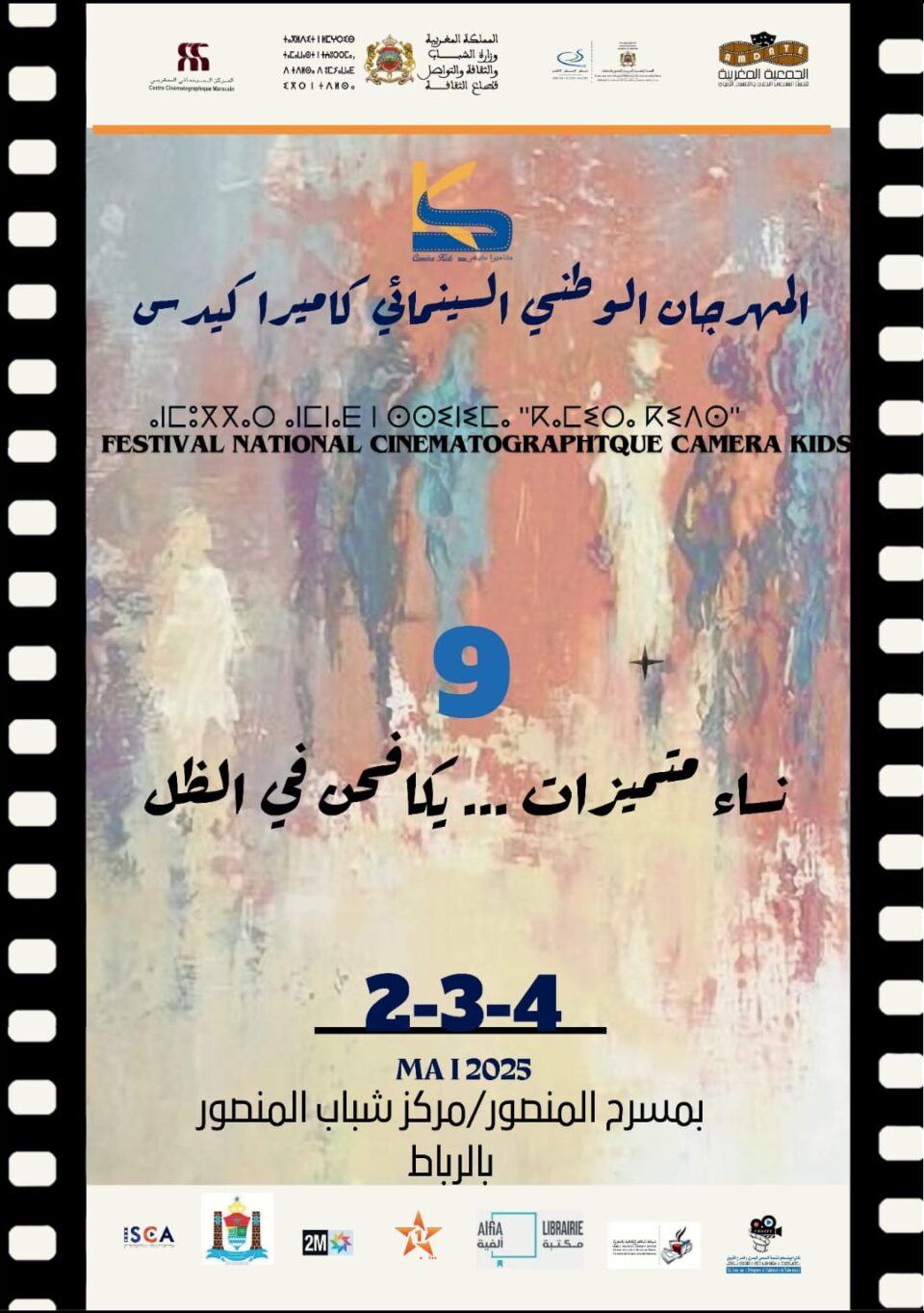 في إطار ترسيخ ثقافة السينما كوسيلة تربوية لتعزيز القيم، تشهد منطقة يعقوب المنصور بالرباط تنظيم الدورة التاسعة من المهرجان الوطني السينمائي “كاميرا كيدس” ما بين 2 و4 ماي 2025، وهو حدث فني وتربوي تنظمه الجمعية المغربية لتنمية السمعي البصري والمسرح التربوي ونادي اليونسكو التابع لها، بدعم من المركز السينمائي المغربي وبشراكة مع اللجنة الوطنية للتربية والعلوم والثقافة، والمعهد المتخصص في السينما والسمعي البصري، وبتنسيق مع المديرية الجهوية لقطاعي الشباب والثقافة لجهة الرباط سلا القنيطرة، وشبكة المقاهي الثقافية بالمغرب.
