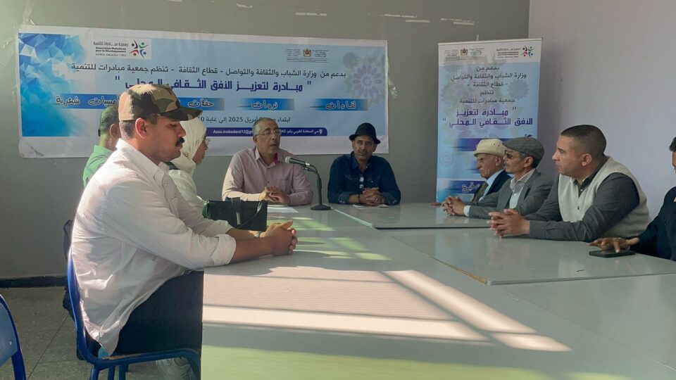 في إطار تعزيز دور الثقافة والفنون في خدمة التنمية المحلية وتمكين الشباب، احتضنت قاعة الندوات بدار الشباب 9 يوليوز بمدينة تيفلت، يوم السبت 10 ماي 2025، لقاء تواصليا نظمته جمعية مبادرات للتنمية بشراكة مع وزارة الشباب والثقافة والتواصل – قطاع الثقافة، تحت عنوان “دور الثقافة والفنون في التنمية المحلية”.