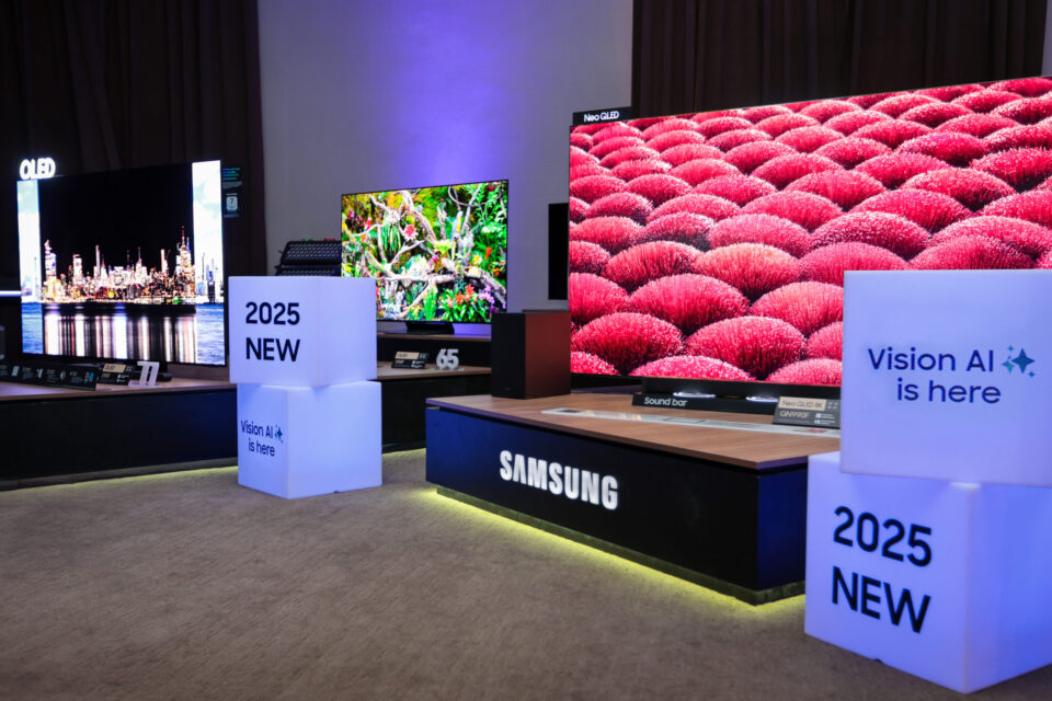 من أبرز ما قدمته سامسونج في قطاع الشاشات، تقنية Vision AI التي تعتمد على خوارزميات تعلم عميق لتحسين جودة الصور. كما وفرت مزايا جديدة مثل التحكم عبر الإيماءات باستخدام ساعة Galaxy Watch، ووضع الخلفية التوليدية التي تتيح تخصيص مظهر الشاشة أثناء وضع الاستعداد. وتم تحسين تجربة المشاهدة في طرازات Neo QLED 8K وOLED، بينما استُخدم الذكاء الاصطناعي في شاشة The Frame لتقديم توصيات فنية تتناسب مع ذوق المستخدم وديكور الغرفة.