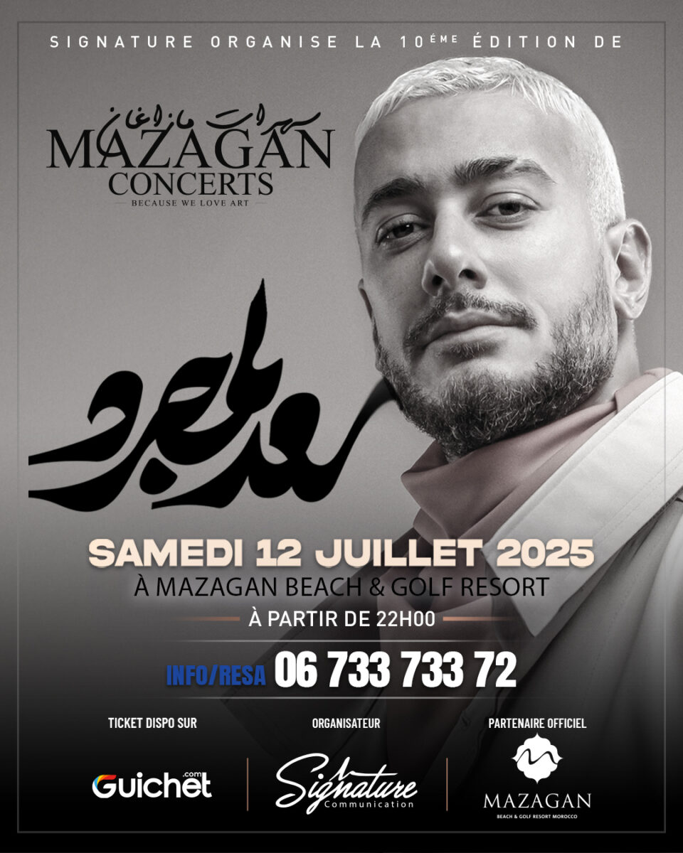 تستعد مدينة الجديدة لاحتضان واحدة من أبرز سهرات صيف 2025، وذلك يوم السبت 12 يوليوز، من خلال حفل استثنائي يحييه النجم المغربي العالمي سعد لمجرد، ضمن فعاليات الدورة العاشرة من “سهرات مازاغان”، المنظمة بمنتجع مازاغان السياحي بشراكة مع شركة Signature Communication.