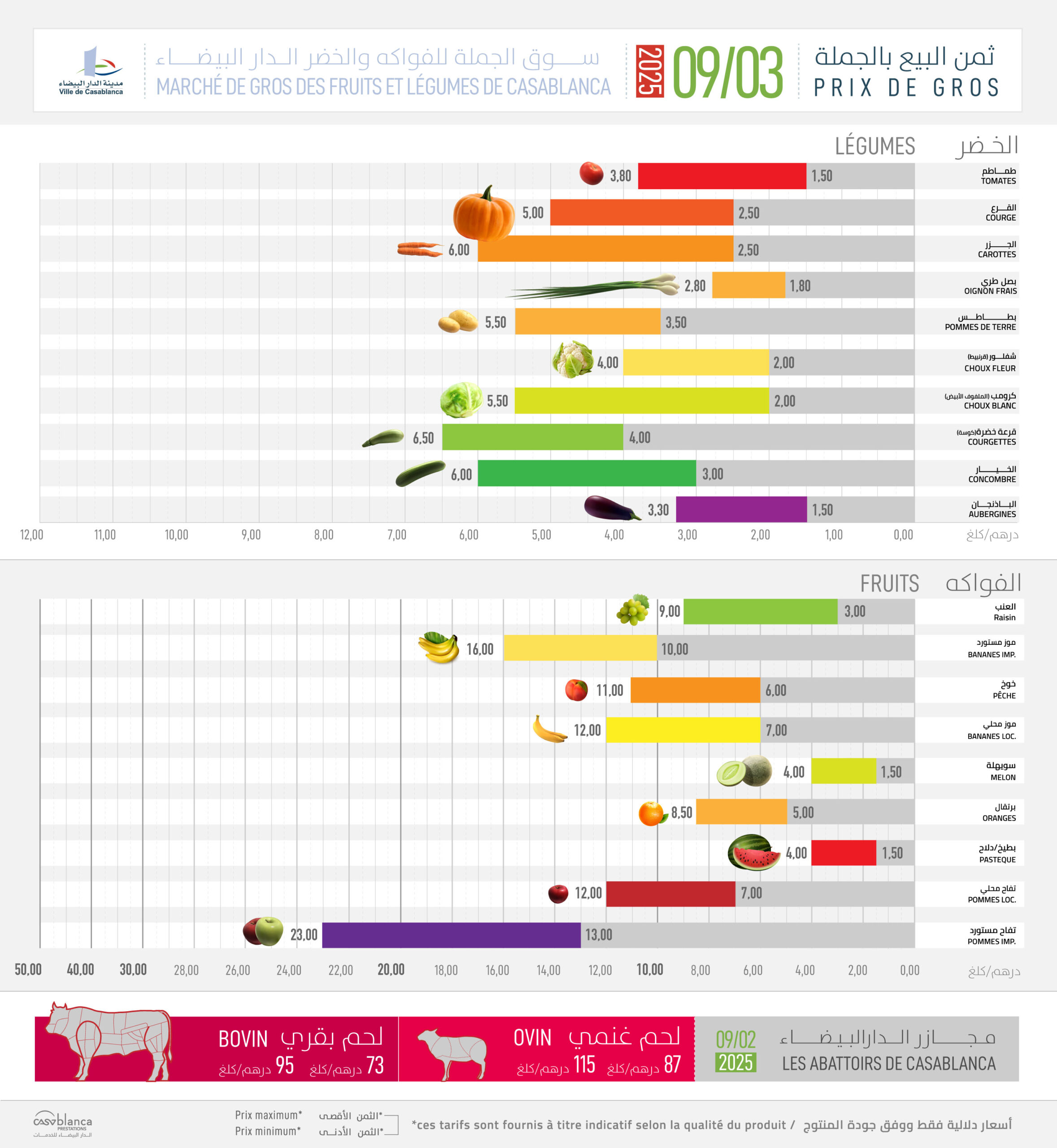 أسعار الفواكه والخضر واللحوم الحمراء بالجملة للأسبوع الأول من شتنبر 2025