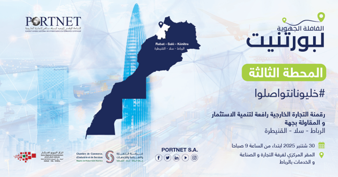 في إطار استراتيجيتها الوطنية الرامية إلى تقريب خدماتها من الفاعلين الاقتصاديين ودعم التحول الرقمي للتجارة الخارجية بالمغرب، أعلنت شركة بورتنيت عن إطلاق المحطة الثالثة من قافلتها الجهوية بجهة الرباط – سلا – القنيطرة، التي تنظمها بشراكة مع غرفة التجارة والصناعة والخدمات للجهة، والمركز الجهوي للاستثمار، والمندوبية الإقليمية للتجارة والصناعة بالرباط.