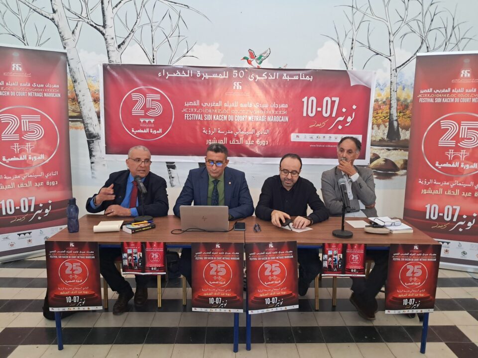 في محطة فكرية هامة ضمن فعاليات الدورة الـ 25 لمهرجان سيدي قاسم للفيلم المغربي القصير، احتضنت “دار الشباب” بعد زوال اليوم الأحد 09 نونبر 2025 ندوة فكرية تحت عنوان “النادي السينمائي مدرسة الرؤية”، وهو الشعار المركزي للدورة.وقد جمعت الندوة نخبة من قامات السينما المغربية والنقد، ويتعلق الأمر بالناقدين محمد باكريم ومحمد صولة، والمخرج محمد الشريف الطريبق، بتسيير من الناقد السينمائي محمد الخيتر. وقد تحول اللقاء إلى منصة لتعميق النقاش حول دور النادي السينمائي في تشكيل وعي المتفرج وتحديات الصناعة اليوم.
