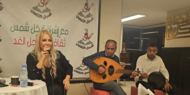كما تم خلال الأمسية تكريم الفنانة سهام عازوري الصافي بدرع السجل الثقافي الذي قدمه الشاعر والروائي أنور الخطيب، إضافة إلى تقديم رمز “حنظلة” لها من طرف سفيرة التراث الفلسطيني صبحية كريم، في مبادرة حملت دلالات ثقافية وإنسانية مميزة.