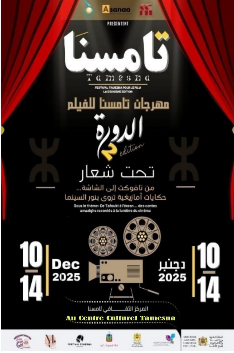 تعيش مدينة تامسنا على إيقاع حدث ثقافي بارز مع انطلاق النسخة الثانية من مهرجان تامسنا للفيلم، الذي تنظمه جمعية السناء للمسرح والثقافة تحت شعار “من تافوكت إلى الشاشة… حكايات أمازيغية تُروى بنور السينما”. ويأتي التنظيم بدعم من المركز السينمائي المغربي وبشراكة مع الجامعة الوطنية للأندية السينمائية، وبمشاركة عدد من الفاعلين في مجال السينما والثقافة.