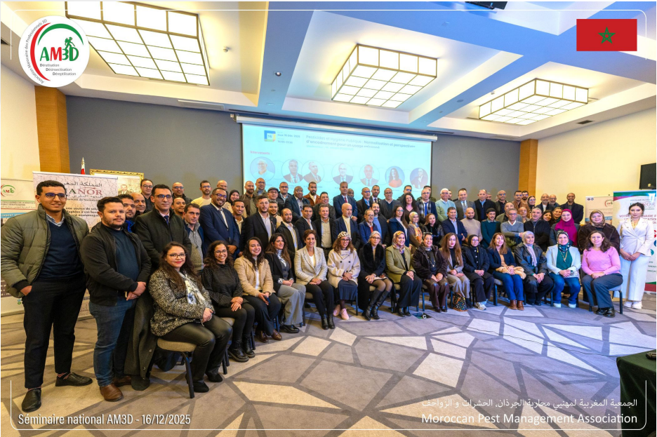 نظمت الجمعية المغربية لمهنيي محاربة الجرذان والحشرات والزواحف (AM3D)، يوم الثلاثاء 16 دجنبر 2025 بالدار البيضاء، ندوة وطنية رفيعة المستوى تحت شعار “مبيدات الصحة العامة والنظافة: التقييس وآفاق التأطير من أجل استخدام عقلاني”. وشكل هذا اللقاء منصة استراتيجية لمناقشة التحديات المهنية والتنظيمية التي تواجه قطاع مكافحة الآفات (3D) في المغرب.