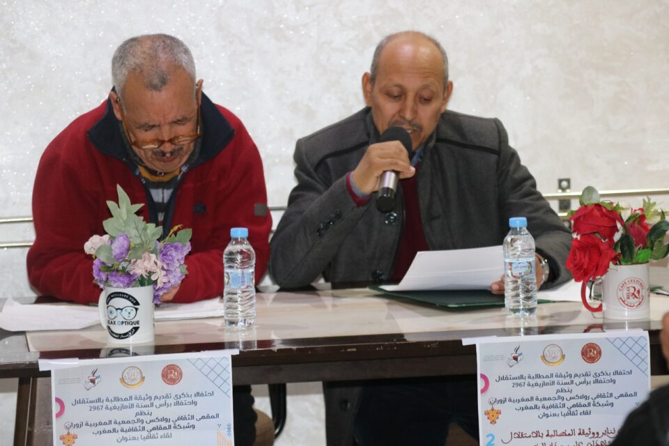 في أجواء احتفالية تعكس عمق التلاحم الوطني وتنوع الروافد الثقافية للمغرب، احتضن المقهى الثقافي رولاكس بمدينة ورزازات، بشراكة مع الجمعية المغربية إزوران للثقافة والإبداع وبتنسيق مع شبكة المقاهي الثقافية بالمغرب، نشاطًا ثقافيًا مميزًا احتفاءً بذكرى تقديم وثيقة المطالبة بالاستقلال ورأس السنة الأمازيغية “إيض نناير 2967”، تحت شعار يؤكد أن هاتين المناسبتين تشكلان شاهدين راسخين على وحدة الوطن وقوة نسيجه المجتمعي.وشهد هذا الموعد الثقافي حضور نخبة من الأدباء والشعراء والمهتمين بالشأن الثقافي، حيث افتتحت فقراته بتحية العلم الوطني، في لحظة رمزية جسدت قيم الانتماء والوطنية. وتضمن البرنامج مداخلات فكرية تناولت أبعاد المناسبة، إذ ركز محمد أبومضا في مداخلته على دلالات ذكرى تقديم وثيقة الاستقلال باعتبارها درسًا من دروس الماضي وشاهدًا حيًا على وحدة وقوة المغاربة، مشددًا على أن الأرض التي أنجبت المقاومة أنجبت أيضًا التعايش والوحدة، وأن التعدد الثقافي يشكل عنصر قوة وطنية لا عامل تفرقة.