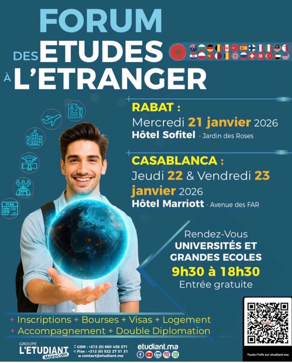 تحتضن مدينتا الرباط والدار البيضاء، خلال شهر يناير الجاري، فعاليات معرض الدراسات بالخارج، الذي تنظمه مجموعة الطالب المغربي، في موعد سنوي أصبح محطة أساسية لمواكبة الطلبة المغاربة الراغبين في استكشاف فرص استكمال دراستهم خارج أرض الوطن. ويُقام المعرض يوم 21 يناير بالرباط، ويومي 22 و23 يناير بالدار البيضاء، في إطار تقليد دأبت عليه المجموعة منذ أكثر من ثلاثين سنة عبر تنظيم معارض الطالب.